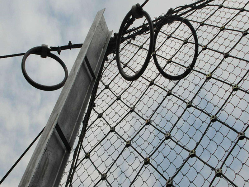 上半部分由特殊的被動防護網(wǎng)組成,鋼絲繩網(wǎng)和立柱是分離的。窗簾柔性防護網(wǎng)特點: