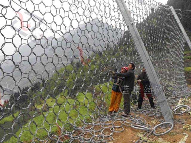 被動(dòng)邊坡防護(hù)網(wǎng)同樣也是選用熱鍍鋅鋼絲編織,只是被動(dòng)防護(hù)網(wǎng)是被安裝在山坡的山腳處,用立柱固定支撐,將整個(gè)被動(dòng)防護(hù)網(wǎng)撐開(kāi),其高度可以做到4米,這樣當(dāng)山坡上出現(xiàn)滾落的落石的時(shí)候,被動(dòng)防護(hù)網(wǎng)可以將滾石攔截在一定的范圍內(nèi),以至于不會(huì)讓滾石滾落到路邊和有人員出入的地方,這樣的防護(hù)對(duì)被動(dòng)防護(hù)網(wǎng)的抗沖擊力的要求更高一些,同時(shí)被動(dòng)防護(hù)網(wǎng)有減壓環(huán)的配后,一點(diǎn)有巨大落石滾落,被動(dòng)防護(hù)網(wǎng)可以多減壓環(huán)進(jìn)行施壓,通過(guò)減壓環(huán)的變形以及被動(dòng)防護(hù)網(wǎng)自身的柔韌性可以將落石阻遏在一定的范圍內(nèi)。