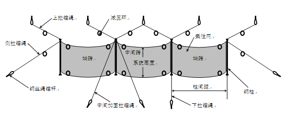 然后就可以安裝鋼絲繩網(wǎng)了,將鋼絲繩網(wǎng)通過縫合繩縫合在上下支撐繩與立柱上。然后進(jìn)行最后的調(diào)試工作,關(guān)于菱形被動(dòng)防護(hù)網(wǎng)的安裝就基本完成,有不明白的地方可以與我們的技術(shù)人員聯(lián)系,聯(lián)系電話:0318-8065688